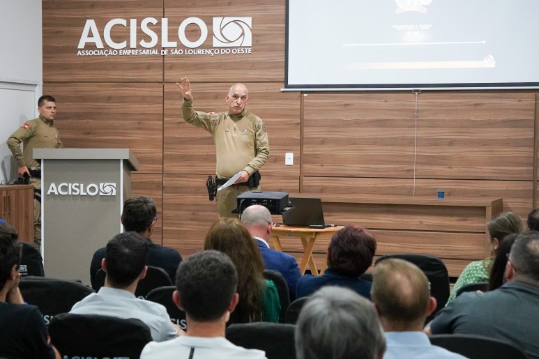 A Polícia Militar (PM) e a Associação Empresarial e Cultural de São Lourenço do Oeste (Acislo) lançaram, na noite desta segunda-feira (27), o Programa Rede de Vizinhos Comercial, iniciativa voltada a fortalecer a segurança no comércio local e aproximar a PM dos empresários. O encontro reuniu representantes da Acislo, Conselho Comunitário de Segurança (Conseg), Polícia Civil (PC), Corpo de Bombeiros, Executivo e Legislativo Municipal, Rotary e Câmara de Dirigentes Lojistas (CDL).