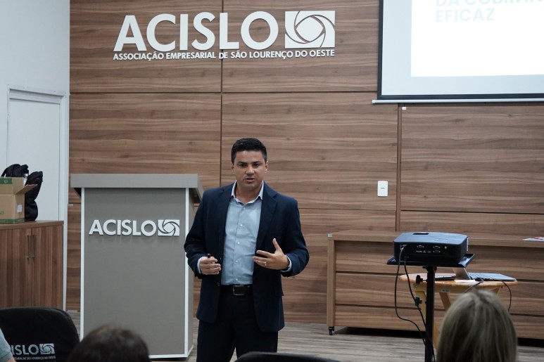 Em um cenário econômico marcado por instabilidade e aumento da inadimplência no país, empresários de diferentes setores se reuniram na noite desta terça-feira (4), no auditório da Associação Empresarial e Cultural de São Lourenço do Oeste (Acislo), para o workshop “A Jornada da Cobrança Eficaz”. A capacitação foi conduzida pelo consultor e palestrante do Sebrae, Mateus Bernardino, especialista com mais de 13 anos de experiência em consultoria e atual diretor do Serviço de Proteção ao Crédito (SPC).