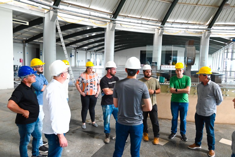 O grupo foi recebido pelo prefeito Agustinho Assis Menegatti, que conduziu a inspeção para apresentar o andamento das intervenções estruturais. O engenheiro responsável e fiscal da obra, Fernando Davies, e representantes da M & MD Engenharia e Construções detalharam as principais ações em execução, como impermeabilização do telhado, troca de calhas, novas coberturas, renovação de forros e pintura externa.